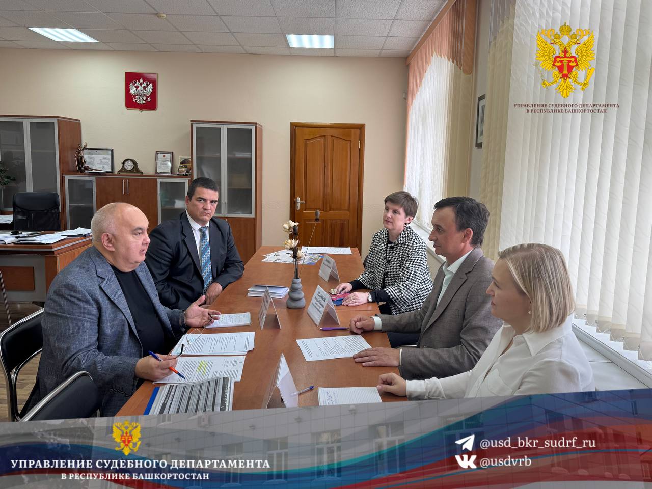 | 20.05.2025 Управление Судебного департамента в Республике Башкортостан организовало рабочую встречу с руководством Управления федеральной почтовой связи Республики Башкортостан Участники встречи: От Управления Судебного департамента: - Начальник управления Роберт Усманов - Начальник отдела по юридическим и общим вопросам Александр Летюк - Заместитель начальника отдела по юридическим и общим вопросам Ольга Ефимова От Почты России: - Директор УФПС РБ Ленард Шафиков - Заместитель директора по операционному управлению Наталья Ковина - Заместитель директора по коммерческой деятельности Оксана Якушина Основные вопросы обсуждения: Оптимизация доставки судебных извещений и корреспонденции Развитие электронного документооборота и цифровизация процессов Решение актуальных вопросов взаимодействия между ведомствами Целью данной встречи является повышение качества обслуживания участников судебных процессов за счет эффективного межведомственного сотрудничества. ![]() |